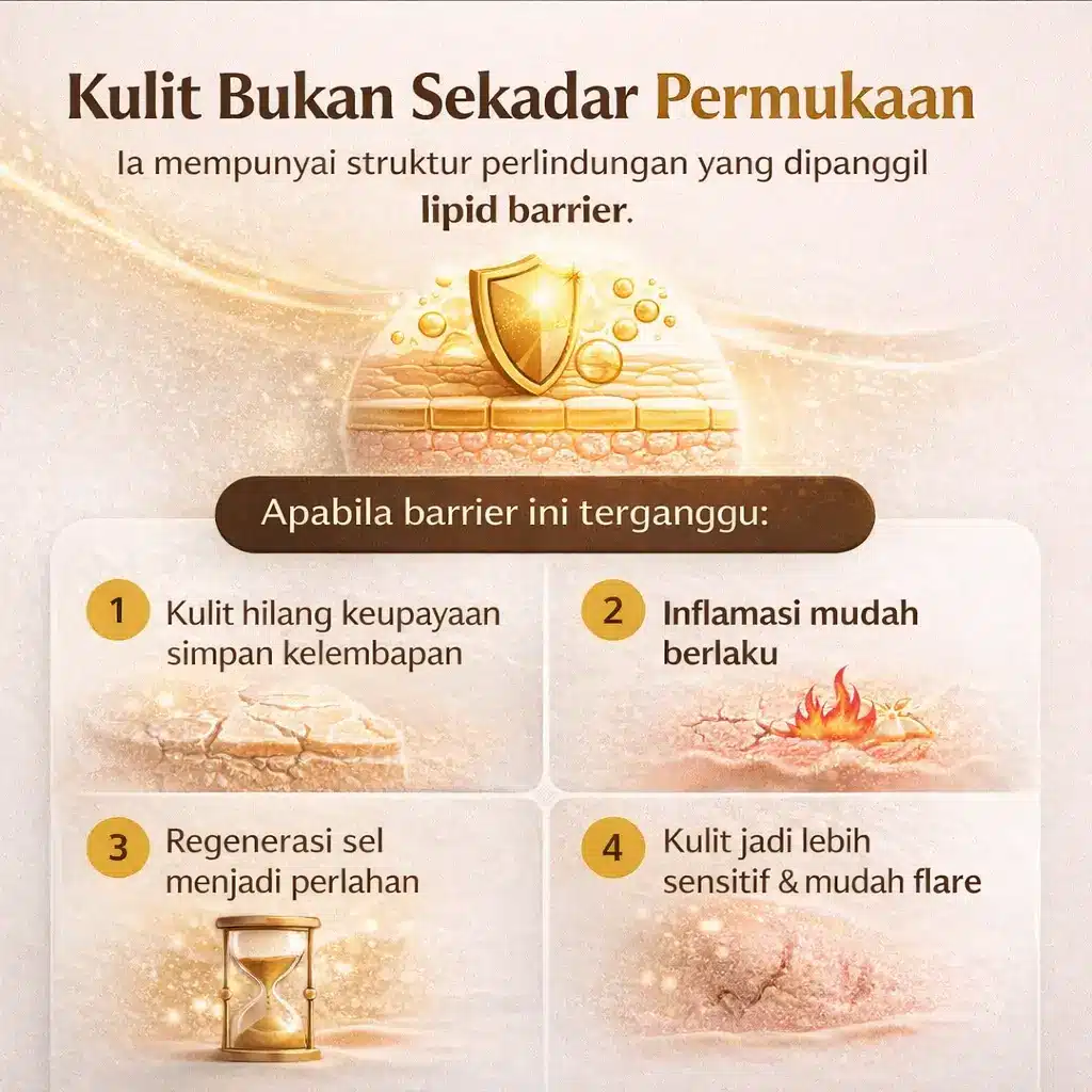 Apabila barrier kembali stabil, kulit menjadi lebih tenang, lebih kuat dan kurang mudah flare.