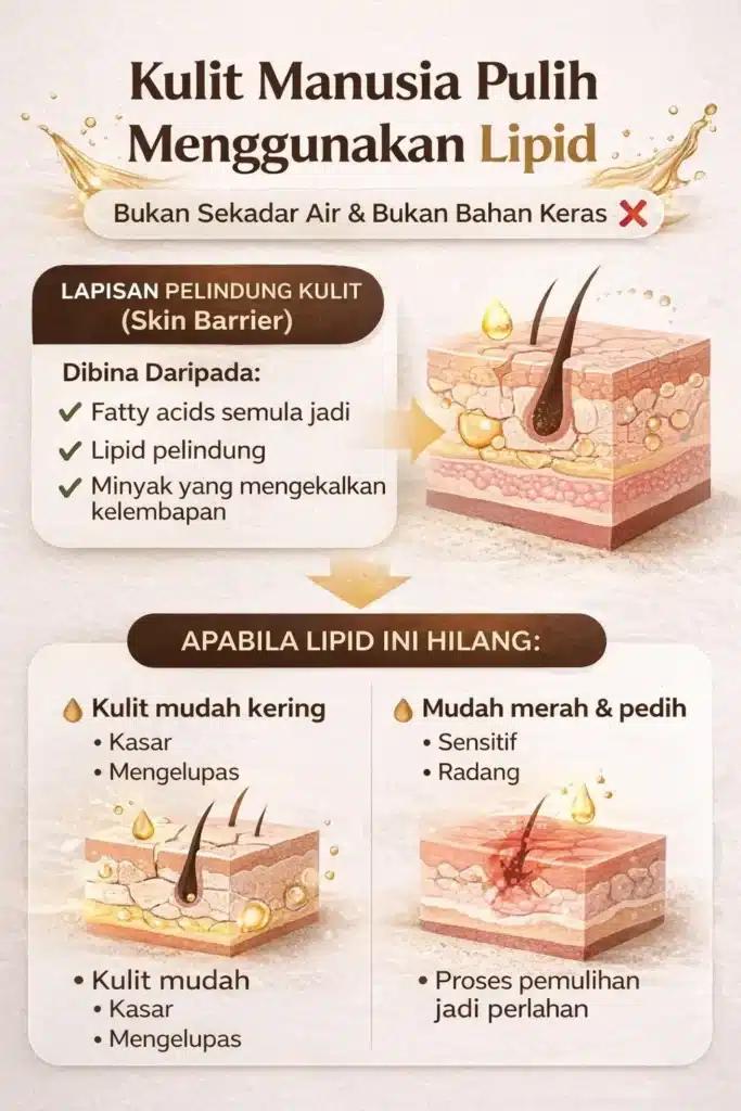 Kulit manusia sebenarnya dibina dengan lipid,bukan sekadar air.